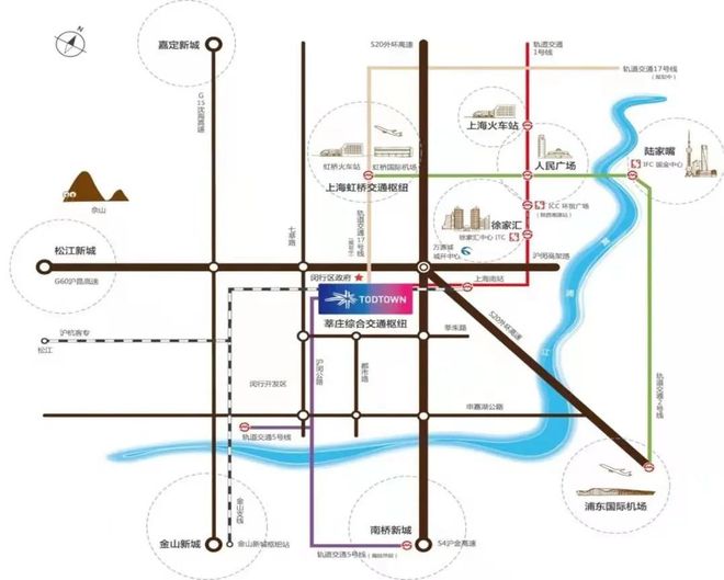 项目位于上海新晋主城副中心——闵行莘庄,处于7000平方公里虹桥国际开放枢纽范围的核心带,集约畅达的交通网络,在未来轨道交通将升级为5条,包括地铁1、5号线,嘉闵线、金山线、沪杭客专。除此之外,还坐拥S4沪金高速、S20外环高速及二十余条公交线国道等连接长三角城市圈,充分享受城市发展的红利。