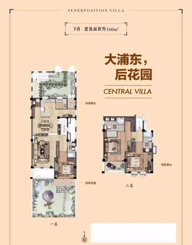 下叠户型是建筑面积160㎡,享有130㎡左右的双层阳光地下室,下叠户型由地下一层、地上两层总共3层空间组成。