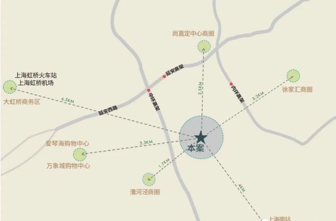 1.2、从交通方面:项目位于吴中路古北路交叉口,1公里左右即可分别上内环和中环高架,在上海绝对是核心地段,距离徐汇商圈仅3公里左右。而且20分钟不到就可以到达虹桥机场,出差也非常方便,项目500米就左右就有地铁站,轨道交通也四通八达。