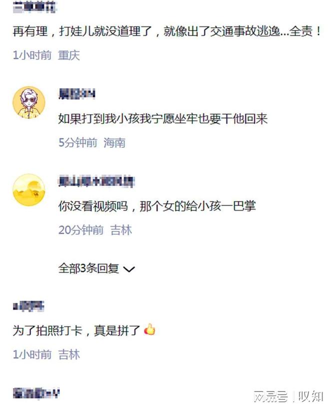还有一些网友并没有在讨论谁对谁错,而是关心起了一些细节问题,比如说抱着孩子的妈妈,有网友说她遇到事情只知道哭,既没有帮自己的丈夫,也没有保护好自己的孩子。