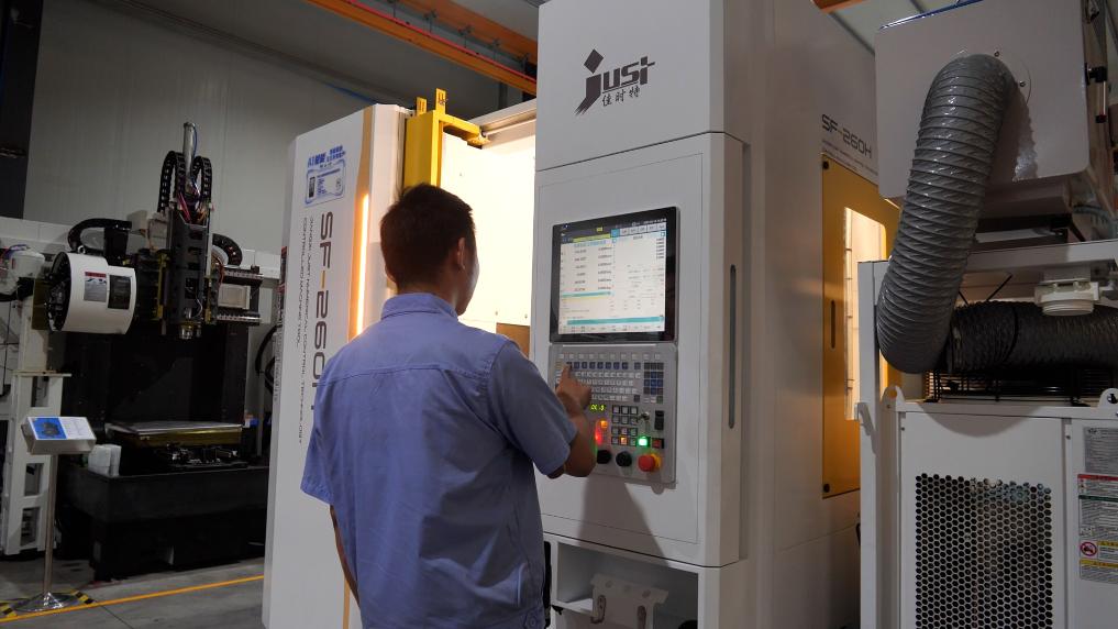 江西佳时特数控股份有限公司技术人员正在操作数控机床。新华社记者 黄和逊 摄